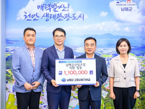 [경남도민뉴스] 남해군은 지난 18일 남해군산림조합 직원들이 고향사랑기부금 110만원을 기탁했다고 밝혔다.