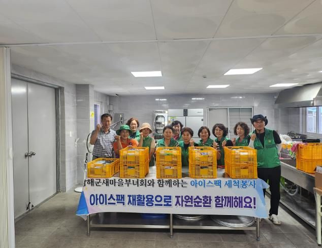 이날 봉사활동에는 읍면 임원들과 청년연대 회원 등 15명이 참여했으며, 참가자들은 재사용 가능한 아이스팩을 분류하여 깨끗하게 세척하고 소독했다.