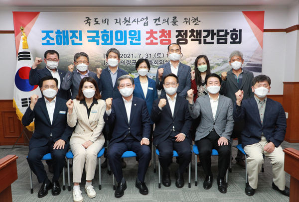 [경남도민뉴스] 의령군은 31일 11시 군청 2층 회의실에서 조해진 지역구 국회의원을 초청해 오태완 군수 주재로 국비 확보 방안 논의를 위한 정책간담회를 개최했다고 밝혔다.