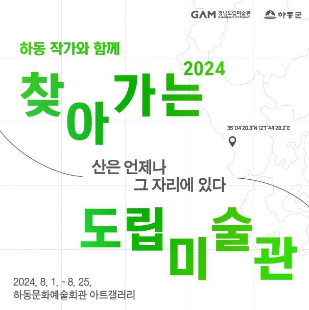 [경남도민뉴스] 오는 8월 1일부터 25일까지(월요일 휴관) 하동군 문화예술회관 아트갤러리에서 2024년 찾아가는 도립미술관 '산은 언제나 그 자리에 있다' 전시가 개최된다.