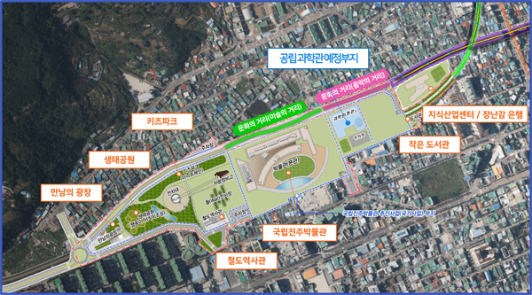 과학관은 구)진주역세권 복합문화공원 조성부지에 총 300억 원(국비 150, 지방비 150)을 투입하여, 건축면적 6,000㎡에 지하 1층, 지상 2층 규모로 2025년까지 건립할 계획이다.