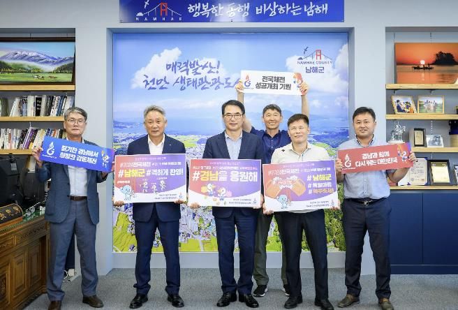 [경남도민뉴스=김부경기자] 남해군은 지난 13일 경상남도에서 개최되는 제105회 전국체육대회와 제44회 전국장애인체육대회의 성공적인 개최를 기원하는 홍보 릴레이 챌린지에 참여했다.