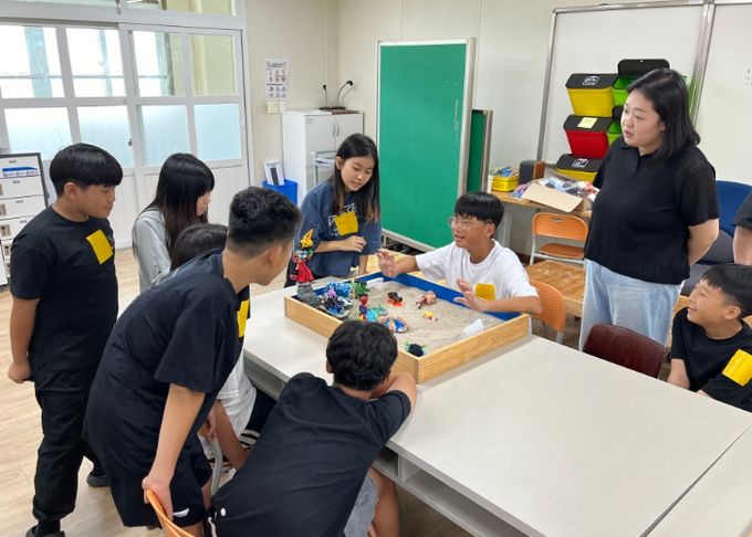 이날 교육은 제주시교육지원청 위클래스의 지원을 받아 진행됐으며, 8월 28일부터 30일까지 3일간 초등학생을 대상으로 자기 돌봄 및 관계 개선 전략을 통한 마음 건강을 증진하는 모래놀이 집단상담 프로젝트를 진행하고 있다.