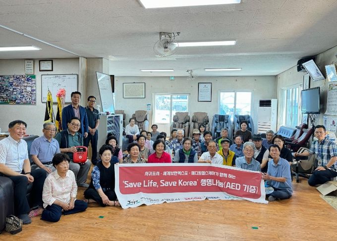 [경남도민뉴스=경남도민뉴스 기자] 서귀포시는 세계보안엑스포(SECON)조직위원회, ㈜메디원헬스케어와 함께 8월 30일 남원읍 위미1리 경로당을 방문해 자동심장충격기 1대를 기증하고, 어르신을 대상으로 AED 사용방법 교육을 실시했다.