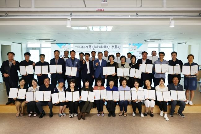 한편 이번 주민자치대학 교육은 (사)한국지역혁신연구원에 위탁해 제주특별자치도 소통협력센터에서 15주 동안 매주 목요일 오후 6시 30분부터 2시간 교육을 진행했다.