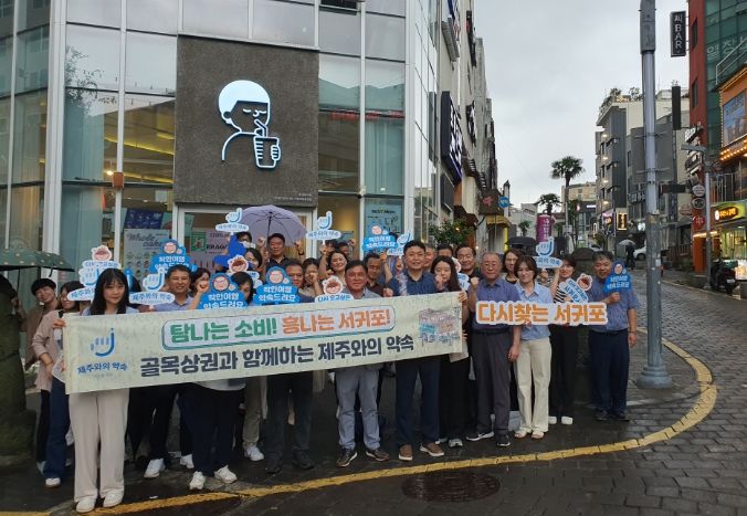 이 날 캠페인은 관내 소상공인과 상가를 대상으로 다가오는 추석 연휴를 맞아 연휴기간 서귀포를 방문한 관광객에게 편안한 관광을 약속드리고, 소비회복세 둔화로 위축된 골목상권을 응원하는 마음을 함께 담아 진행됐다.