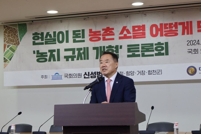 이번 토론회를 개최한 신성범 의원은 개회사에서 "농촌 지역 인구소멸이 이뤄지는 가운데 현실적으로 막을 수 있는 방법이 없는 상황”이라면서 “이를 조금이나마 늦출 방안 중 하나가 농지에 씌워진 과도한 규제를 풀어야 하며, 특히 인구소멸지역에 대해서는 확실히 풀어야 한다”고 말했다.