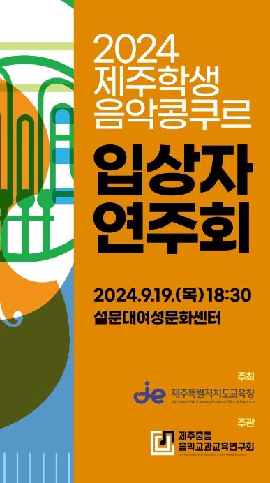 [경남도민뉴스=경남도민뉴스 기자] 제주특별자치도교육청이 주최하고 제주중등음악교과연구회가 주관하는 ‘2024 제주학생 음악 콩쿠르 입상자 연주회’가 19일 오후 6시 30분 설문대여성문화센터에서 열린다.