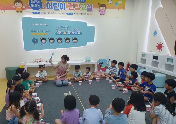 [경남도민뉴스=경남도민뉴스 기자] 서귀포시는 9월 14일 토요일 서귀포시 어린이 건강체험관에서 5세~7세 어린이와 가족 50여 명이 참여한 가운데‘놀면서 배우는 어린이 건강교실’운영하고 이번 교육을 끝으로 올해 건강교실 프로그램을 마무리했다.
