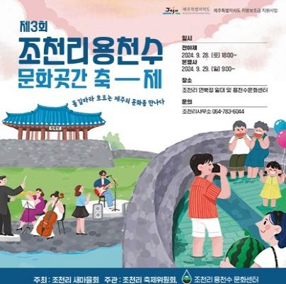 [경남도민뉴스=경남도민뉴스 기자] 조천읍은 오는 9월 28일, 29일 주말 이틀간 조천포구 일원에서 조천리용천수 문화곳간 축제를 개최한다.