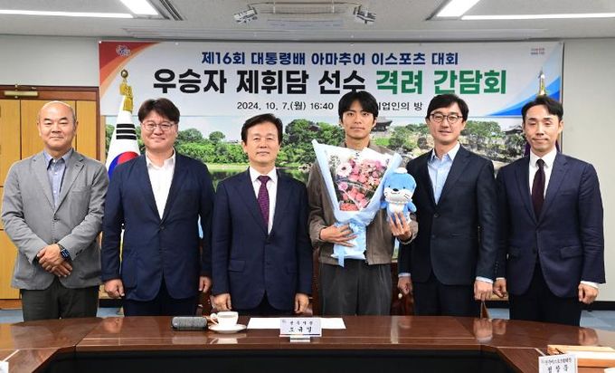 [경남도민뉴스=김종태 기자] 진주시는 7일 시청 기업인의 방에서 제16회 대통령배 아마추어 이스포츠 대회 ‘FC 온라인’ 부문에서 우승한 제휘담 선수를 격려하기 위한 간담회를 열었다.