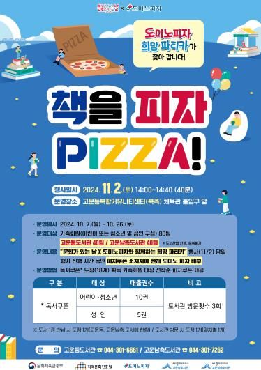 고운동도서관과 고운남측도서관은 도서관을 자주 이용하는 가족에게 혜택을 제공하기 위해 ‘책을 피자(PIZZA!)’ 행사를 기획했다.