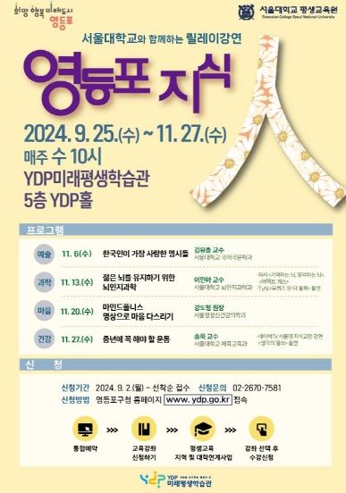 강의는 매주 수요일 오전 10시, YDP 미래평생학습관에서 진행된다.