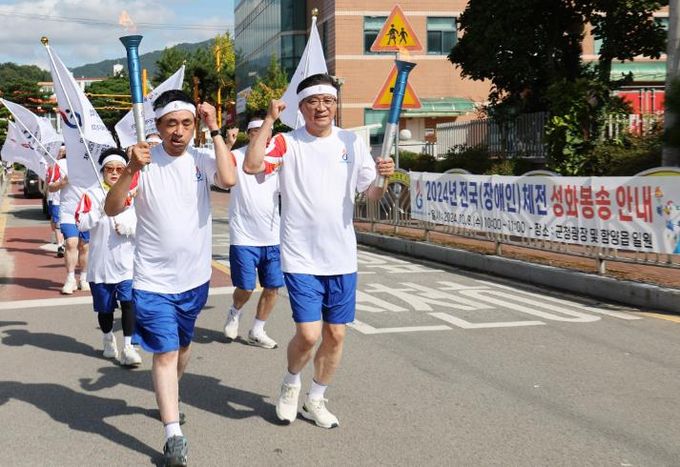 [경남도민뉴스=장광동 기자] 함양군은 9일 함양군청 광장에서 2024년 전국체전 및 전국장애인체전의 성공적인 개최와 참여 선수들을 응원하는 ‘성화 봉송 환영식’을 가졌다.