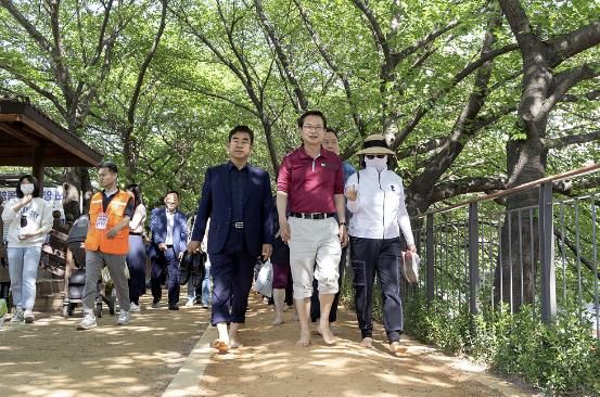 이번 행사는 1.1㎞에 이르는 ‘맨발 황톳길’을 맨발로 걸으며 자연과 교감하고, 안양천의 벚꽃나무와 하천이 어우러지는 가을 풍경을 즐길 수 있는 시간을 제공하기 위해 마련됐다.
