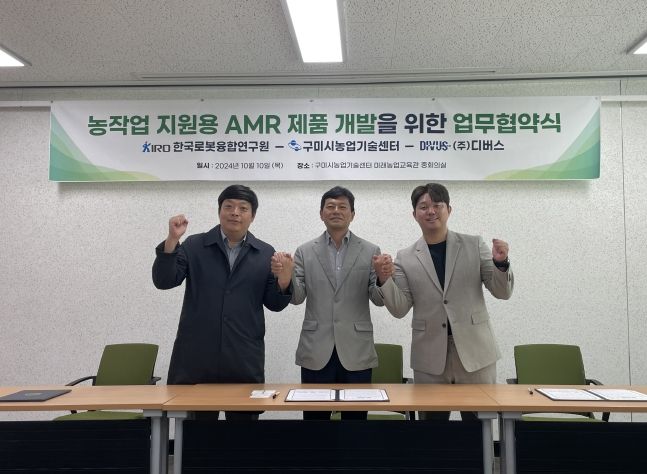 [경남도민뉴스=이돈휘 기자] 구미시는 지난 10일 구미시농업기술센터, KIRO로봇융합연구원, 디버스와 함께 농작업 지원용 자율주행로봇(AMR) 개발을 위한 업무협약(MOU)을 체결했다.
