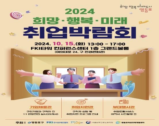 [경남도민뉴스=윤장희 기자] 영등포구가 15일 오후 1시, FKI타워 1층에서 3백여 개의 다양한 일자리가 쏟아지는 ‘희망‧행복·미래 취업박람회’를 개최한다고 밝혔다.
