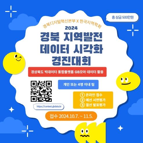 [경남도민뉴스=이돈휘 기자] 경상북도는 GB모아(경북 빅데이터 통합플랫폼)의 활용도를 높이고, 경북의 지역발전 아이디어를 발굴하기 위해 ‘2024 경북 지역발전 데이터 시각화 경진대회’를 개최한다.