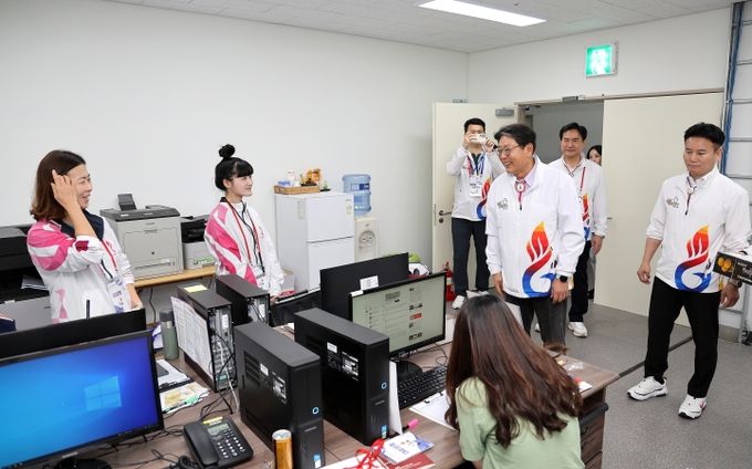 지난 13일 홍태용 김해시장은 김해종합운동장에 있는 시·도 체육회와 자원봉사 상황실을 찾아 각 체육회 임원진과 자원봉사자들을 격려하고 원활한 대회 운영을 위한 적극적인 지원을 약속했다.