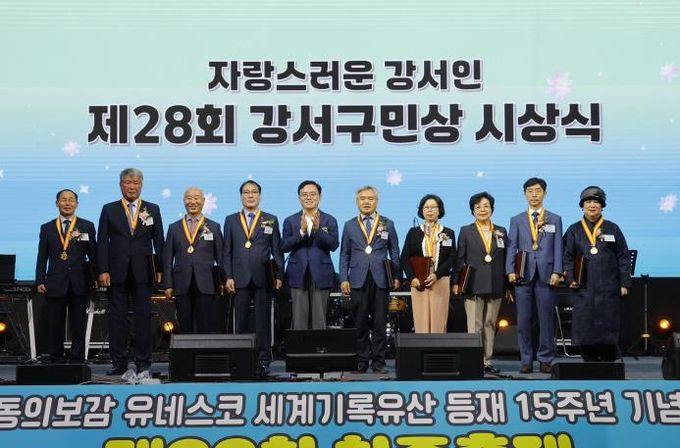 진 구청장은 이날 오후 서울식물원 잔디마당에서 ‘제28회 강서구민상’ 시상식을 열고 지역사회 공헌에 앞장서 온 구민 9명에게 표창장을 수여했다.