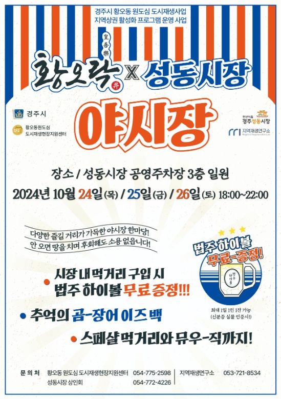 [경남도민뉴스=이돈휘 기자] 경주시는 오늘 24일부터 26일까지 사흘간 성동시장 공영주차장 3층에서 ‘황오락X성동시장’ 야시장을 개최한다.