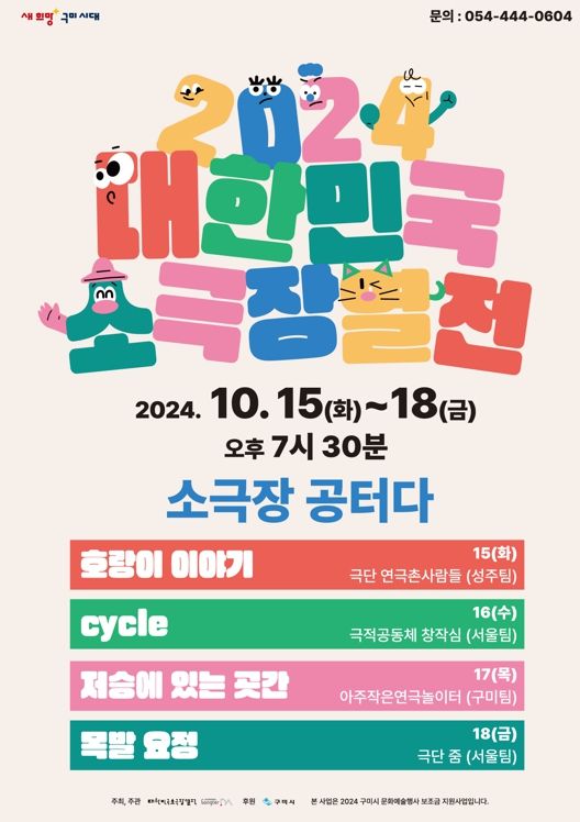 [경남도민뉴스=이돈휘 기자] 구미시는 15일부터 18일까지 소극장 공터다에서 (사)문화창작집단 공터다(대표 황윤동)가 주관하는 '2024 대한민국 소극장열전'을 개최한다.