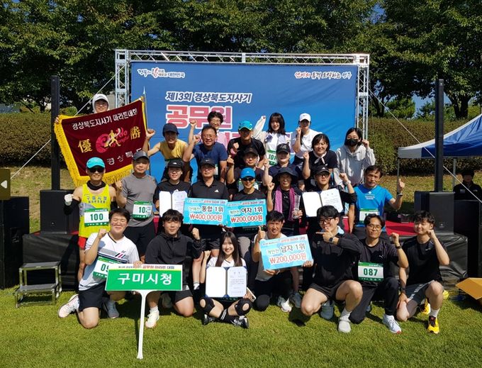 [경남도민뉴스=이돈휘 기자] 구미시청 마라톤 동호회가 지난 10월 12일 토요일 영주 풍기인삼축제장에서 열린 '제13회 경상북도지사기 공무원마라톤대회'에서 단체전 통합우승을 차지했다.