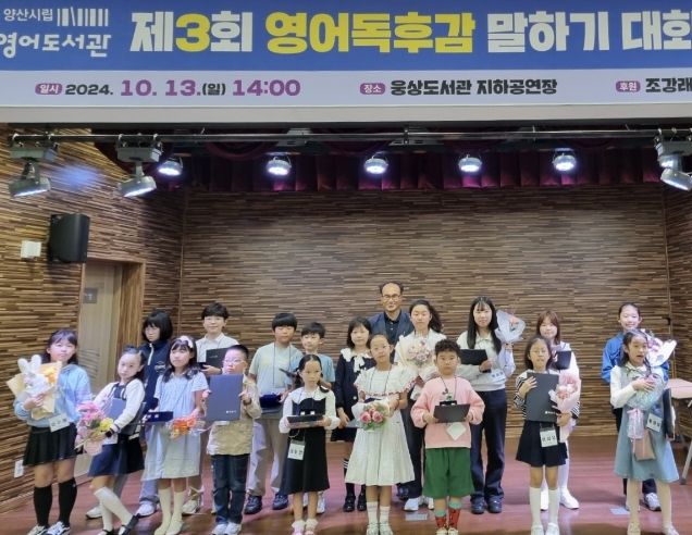 웅상도서관 지하공연장에서 운영한 제3회 영어독후감 말하기 대회에는 Group A(1~2학년), B(3~4학년), C(5~6학년) 세 부문으로 나누어 진행했는데, 예선을 통과한 18명의 학생들이 참가했다. 또한 대회 참가 학생들은 각자 본인만의 특색에 맞게 발표를 진행하였으며, 참가자 가족 80여 명이 참석해 대회 현장의 열기를 더했다.