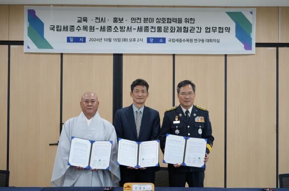 [경남도민뉴스=도문호 기자] 세종소방서가 지난 15일 국립세종수목원 연구동 대회의실에서 국립세종수목원, 대한불교조계종 광제사와 시민안전문화 증진을 위한 업무협약을 체결했다.