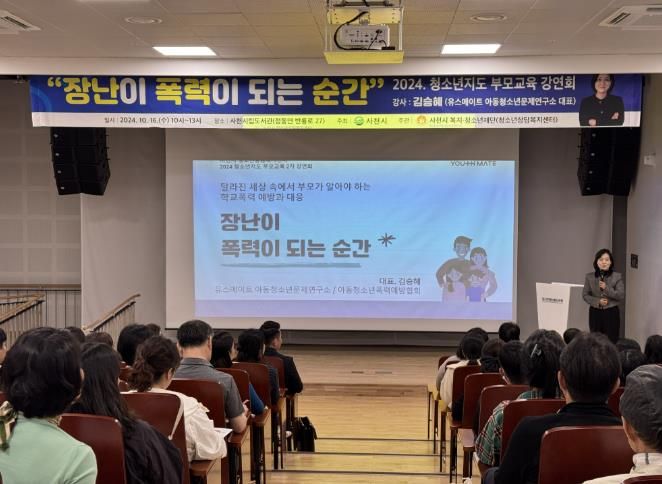 [경남도민뉴스=김종태 기자] 사천시 복지·청소년재단 소속 청소년상담복지센터는 16일 사천시립도서관 강당에서 건강한 가족문화 형성을 위한 ‘2024 청소년지도 부모교육 2차 강연회를 실시했다.