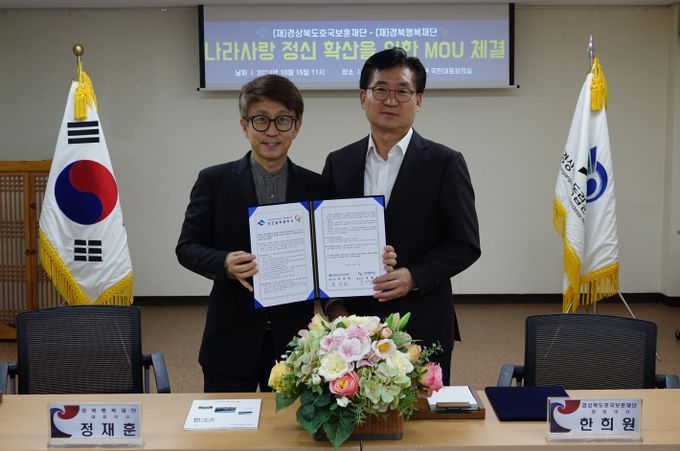 [경남도민뉴스=이돈휘 기자] (재)경상북도호국보훈재단은 10월 15일 11시 경북행복재단(대표이사 정재훈)과 상호발전을 위한 업무협약을 체결했다.