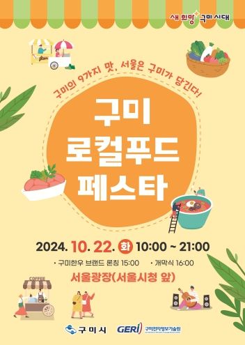 [경남도민뉴스=이돈휘 기자] 구미시는 10월 22일 오전 10시부터 서울광장에서 구미를 즐기고 맛볼 수 있는‘구미 로컬푸드 페스타’를 개최한다. 이번 행사는 구미의 신선한 농축산물과 식품 브랜드를 서울 시민들에게 소개하며, 지역발전을 위한 서울과의 상생협력을 강화하기 위해 마련됐다.