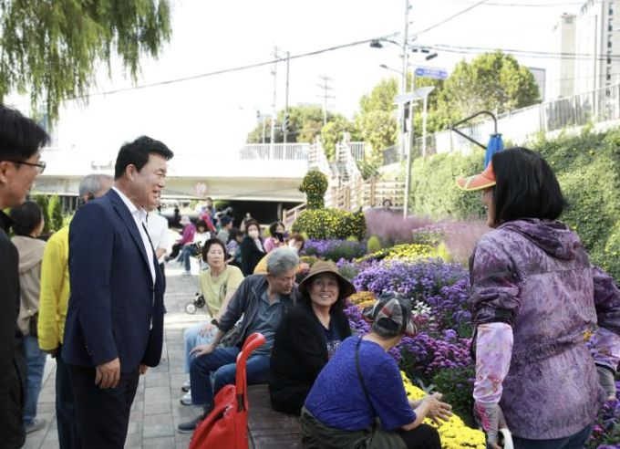 [경남도민뉴스=윤장희 기자] 관악구가 별빛신사리 상권 (▲신원시장 ▲관악종합시장 ▲서원동 상점가(순대타운)) 인근 별빛내린천을 국화향기로 가득 채웠다.