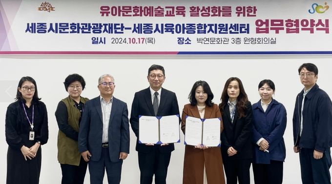 [경남도민뉴스=도문호 기자] 세종시문화관광재단은 17일 세종특별자치시육아종합지원센터와 ‘세종형 유아 특화 예술교육 활성화’를 위한 업무협약을 체결했다.