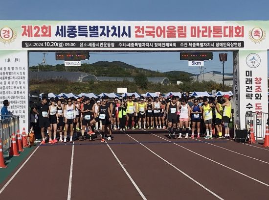 [경남도민뉴스=도문호 기자] ‘제2회 세종특별자치시 전국 어울림 마라톤대회’가 20일 세종시민운동장에서 장애인과 비장애인 3,000여 명의 참여 속 열렸다.