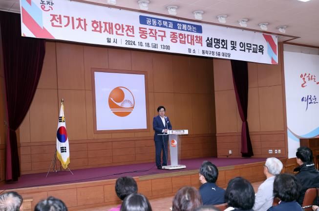지난 9월 정부가 전기차 화재 안전관리 대책을 발표한 이후 구는 실질적인 지원방안이 포함된 동작구 전기차 화재 안전 종합대책을 마련해 '공동주택관리법'에 따른 입주자대표회의 법정의무교육과 함께 설명회를 진행했다.