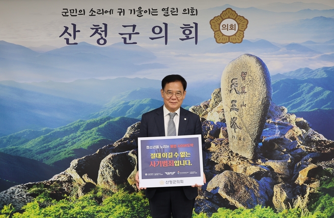 [경남도민뉴스=변정형 기자] 김수한 산청군의회 의장이 10월 21일 ‘청소년 불법 사이버도박 근절’ 챌린지에 동참해 청소년을 대상으로 한 불법 사이버도박의 위험성을 알렸다.