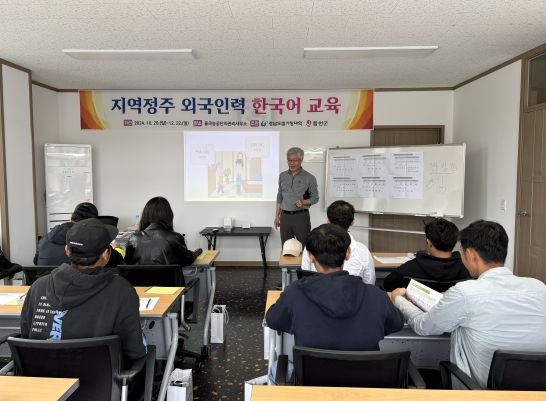 [경남도민뉴스=김춘호 기자] 합천군은 외국인 근로자의 지역 정착을 지원하고, 장기체류가 가능한 숙련기능인력(E-7-4) 비자 취득을 돕기 위해 20일 율곡농공단지사무소에서 한국어 교육을 진행했다.