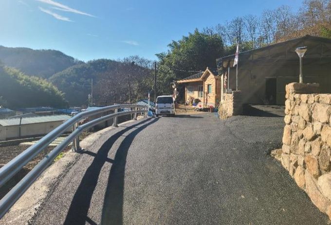 306m 길이의 마을 옹벽을 새로 쌓고 낙상과 추락 위험이 있는 도로 495m에는 안전 가드레일을 설치했다.