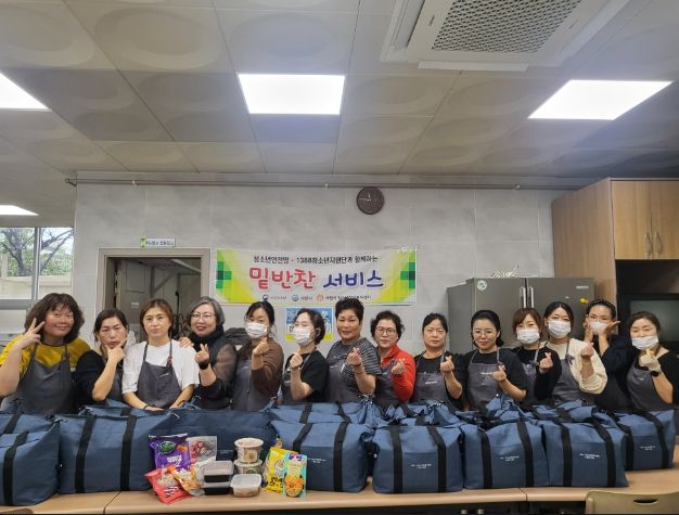 이번 밑반찬은 동남사료공업사 문현숙 대표가 지원한 어묵과 함께 제철 식재료로 만든 반찬 3종, 간편식, 간식 등으로 구성됐다.