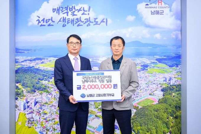 [경남도민뉴스=김부경 기자] 남해군은 지난 22일 국립농산물품질관리원 남해사무소 직원들이 고향사랑기부금 200만 원을 전달했다고 밝혔다.