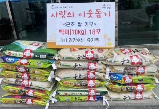 [경남도민뉴스=김병현 기자] 창녕군 남지읍행정복지센터는 故김장수(前창녕군공무원)씨의 배우자와 자녀들이 장례식을 치르는 동안 들어온 근조 쌀 10kg 18포를 어려운 이웃을 돕기 위해 기부했다고 23일 밝혔다.
