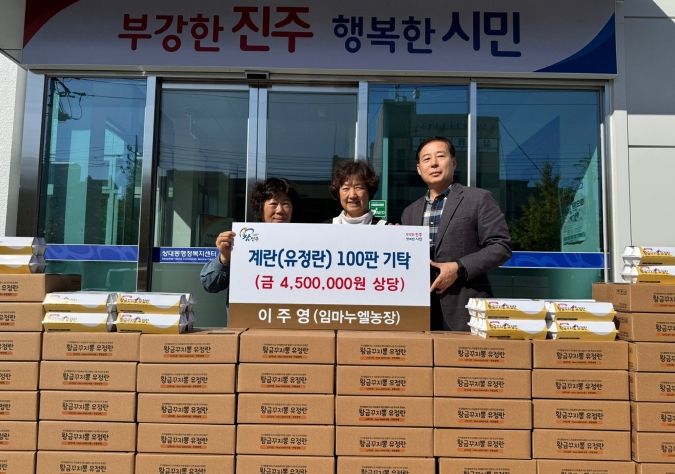 진주시복지재단 관계자는 “이주영 대표님의 따뜻한 나눔에 감사드리며, 기탁해 주신 유정란은 지역 내 돌봄이 필요한 아동들에게 소중히 전달하겠다”고 말했다.