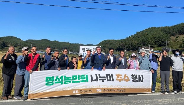 명석면 농민회의 ‘나눔 쌀’을 수확은 올해로 3회째이며, 이번 행사에는 30여 명의 회원이 참석하여 총 3,612㎡ 면적의 벼를 수확했다.