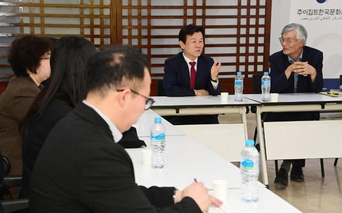 이날 오후 주이집트한국문화원을 찾은 조규일 시장은 이집트와 진주시의 미래 발전을 위한 활동과 향후 이집트와 진주시의 축제, 관광, 문화 교류에 대한 논의를 이어갔다.