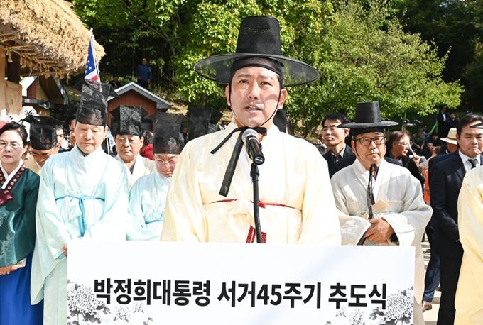 김장호 구미시장은 추도사를 통해 "박정희 대통령의 경제부흥과 교육 정신을 이어받아 교육발전특구 지정, 서대구~의성 급행철도, 사곡역 신설, 대경선 개통 등의 기회를 발판으로 구미시의 새로운 역사를 써내려가겠다”고 밝혔다.