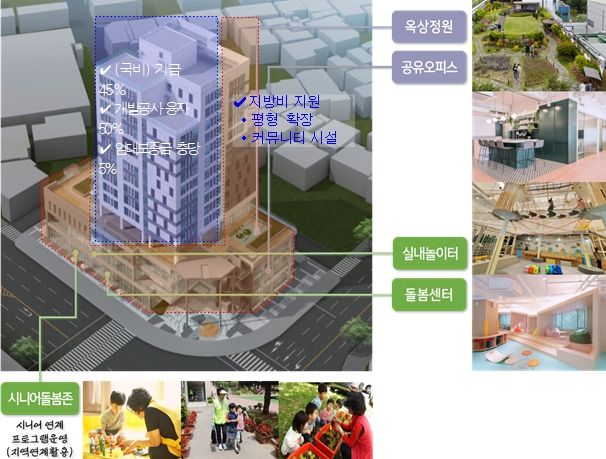 한국토지주택공사는 전국 시군구를 대상으로 인구 8만 이상 도심 내 공공임대주택 공급을 원칙으로 주거 취약계층 해소를 위한 소형 평형(50㎡미만) 위주의 양적 공급 확대에 중점을 두고 있다.