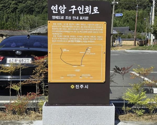 진주시는 ‘연암구인회로’와 ‘효주허만정로’ 명칭 부여를 위해 지역주민의 의견을 수렴하고, 주소정보위원회를 개최하여 명예도로명을 확정했다. 현재 명예도로명판과 명예도로 조성 안내 표지판 설치를 완료한 상태이다.