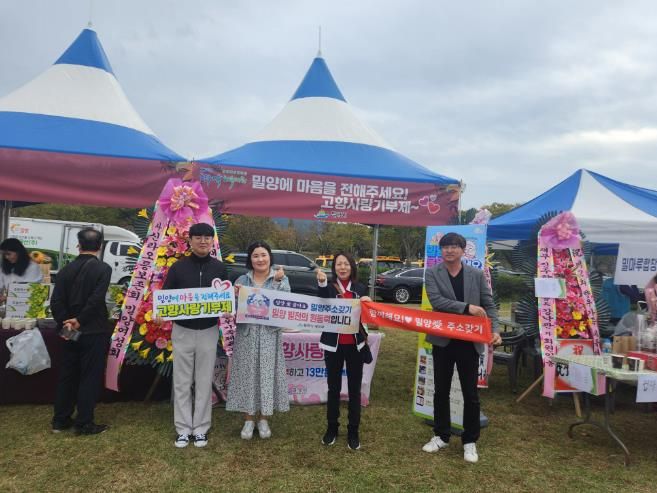 시는 지난 27일 6년 만에 부산 삼락생태공원에서 열린 재부 밀양 향우 행사에서 밀양시 고향사랑기부제 홍보 부스를 운영했다.