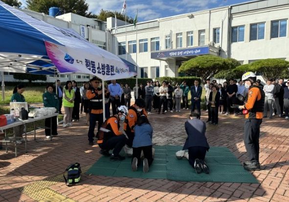 또한, 훈련 후 남해소방서 주관으로 대표적인 응급·구호 활동인 심폐소생술에 대한 교육이 이루어졌다.